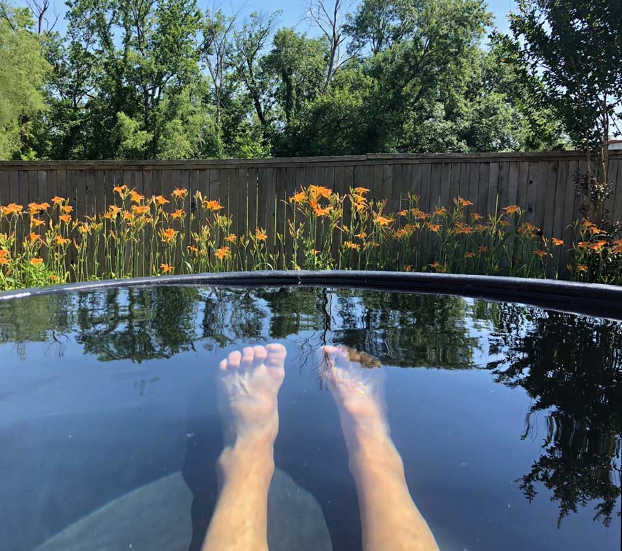 Ahhhhhhhhhhhhh, relaxing in backyard stock-tank pool in Bartlesville, Oklahoma, USA.